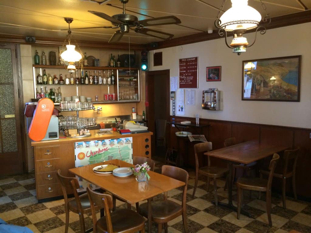 Chaque semaine, de septembre à mars, les patrons tuent un cochon, le préparent et le fument. Saucisses à rôtir, atriaux, saucisses aux choux, saucissons, jambons et boutefas faits maison se dégustent avec un bon verre de vin choisi parmi la production des quatorze vignerons du village. Pour les amateurs de fromage et de poisson, l’établissement propose une alternative à la « cochonaille » avec des Malakoffs maison et du saumon fumé sur place.