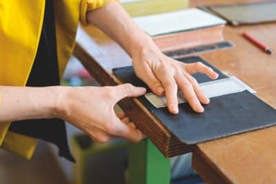 Il existe une multitude de techniques de reliures qui demandent des étapes de fabrication différentes. Les feuilles de papier sont tout d’abord collées ou cousues avec du fil, un travail qui nécessite entre 40 minutes et 1h30 selon le volume de l’ouvrage. La confection de la couverture dépend des besoins du client. Généralement, une feuille cartonnée de 2 à 3mm d’épaisseur est découpée à la cisaille avant d’être recouverte de diverses matières. Cuirs de chèvre, de vache ou d’agneau, textile, papier, bois, plexi, aluminium… dlignes possède quelque 400 matériaux différents pour fabriquer les couvertures. Une fois la couverture réalisée, la dernière étape consiste à assembler l’ouvrage. Dans un livre classique, les pages de garde font le lien entre le bloc et la couverture. Pour des créations plus contemporaines, il existe une vaste palette de techniques maîtrisées avec « une exactitude quasi obsessionnelle » par les artisanes de l’atelier dlignes qui ne cachent pas leur envie de continuer à expérimenter. « Etre curieux est une nécessité pour faire revivre et évoluer notre métier ! »