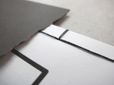 L’ouvrage est entièrement assemblé sans colle. Les feuilles sont préalablement percées à l’aide d’un poinçon et le livre est ensuite cousu au fil apparent.