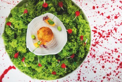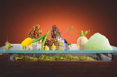 Dans la cuisine de Marie Robert, tout est bon, tout est beau. « L’un ne va pas sans l’autre, souligne la jeune cheffe. Pour mes recettes, je pars toujours du goût puis je travaille les couleurs et la présentation. Je crois qu’on ressent aussi un certain côté féminin dans mes plats. » Résultat : un menu ludique, graphique et plein de surprises. Un bonzaï aux fruits exotiques en guise de dessert, de la fumée, des couleurs pop et acidulées, des lits de mousse… Sous la baguette de Marie Robert, la gastronomie se transforme en spectacle. « Je suis très spontanée mais je muris chaque recette au fil du temps et de mes envies, explique-t-elle. Je teste des petites choses toute l’année avant de mettre au point mes nouveaux plats. Mais uniquement quand je le sens, pas parce que je m’impose un timing. »