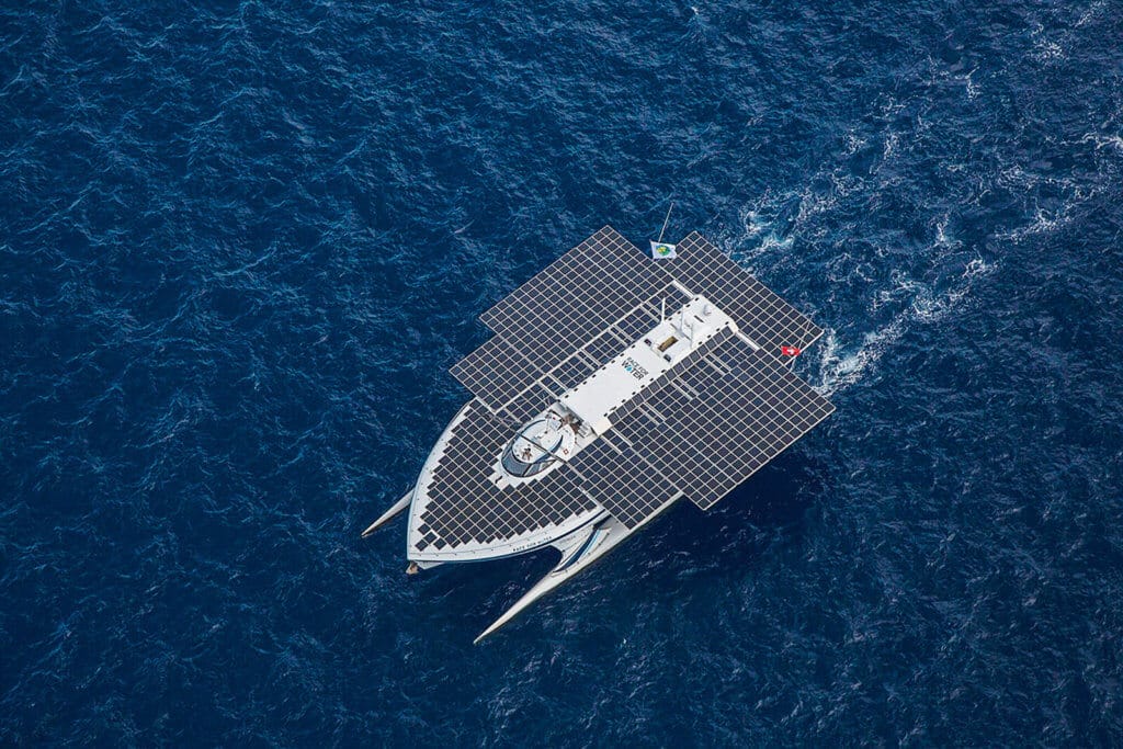 Parce que le plastique n’est pas la seule pollution à laquelle les océans sont exposés, la Fondation Race for Water a choisi pour sa nouvelle Odyssée un bateau propulsé uniquement par un mix de trois énergies propres. Le solaire, tout d’abord, avec 512m2 de panneaux solaires produisant une énergie stockée dans huit tonnes de batteries au Lithium-ion embarquées à bord. Le vent, ensuite, avec une aile de kite auto-pilotée de 40m2 déployée à 150m d’altitude. Enfin, 200kg d’hydrogène sont stockés dans 25 bouteilles à 350 bars et convertis en électricité grâce à deux piles à combustible. Un véritable exploit technologique qui a vocation à démontrer la puissance des énergies renouvelables et permettre d’accélérer la recherche de nouvelles solutions concrètes de développement durable.
