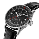 Les Navitimer Automatic et Automatic GMT 41 simplifient son style légendaire en supprimant le chronographe sans toutefois altérer l’équilibre du cadran. La position centrale de l’échelle 24 heures sur le cadran clair de la GMT et de l’Automatic permet de mettre en valeur la règle à calcul circulaire tout en affinant l’esthétique de la montre. Pour perfectionner la collection, la lunette crantée a été intégrée et apporte une touche contemporaine. Une alternance de finitions polies et brossées crée aussi un jeu de lumière dynamique. Les bracelets en cuir d’alligator, munis d’une boucle déployante papillon harmonieuse, offrent confort et aisance. La gamme propose des cadrans colorés, entourés d’acier inoxydable ou d’or rouge 18 carats.
