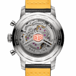 Elle se pare de l’emblème Deus et de son adage, « In benzin veritas », tous deux présents sur le cadran, ainsi que d’un bracelet en cuir perforé sur le thème de la course automobile, d’un tachymètre pour mesurer la vitesse et de sous-cadrans contrastants « squircle » (mi-rond, mi-carré) qui évoquent la jauge des tableaux de bord vintage. Elle est également dotée d’une aiguille de chronographe spéciale en forme d’éclair et d’un moteur digne de ce nom sous le capot : l’exceptionnel Calibre Manufacture Breitling 01.