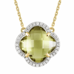 Collier, Quartz Olive, Diamants, Or Jaune