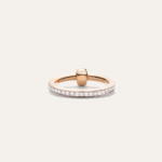 Profondément symbolique, la collection Pomellato Together condense les liens qui nous unissent et célèbre l’amour sous toutes ses formes. La mono-bande entièrement sertie de diamants blancs de cette bague en or rose contraste avec un très beau maillon en or uni. Idéale comme alternative contemporaine aux alliances ou aux bagues de fiançailles, cette bague peut aussi tout simplement symboliser l’affection ou l’amitié. Facile à porter et pouvant être assortie avec les autres bagues de Pomellato Together, cette création est un parfait hommage à l’amour dans le plus pur style milanais.