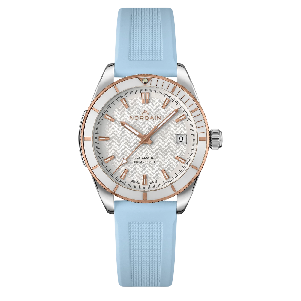 La ligne Adventure partage son ADN avec la nature et ce plaisir d'en explorer et d’en conquérir chaque recoin - ses sentiers, ses sommets et ses marées. Le motif unique NORQAIN est inspiré des montagnes suisses.