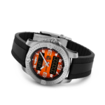 Le 21 mars 1999, Bertrand Piccard et Brian Jones ont achevé le premier tour du monde en ballon sans escale. À bord de leur Breitling Orbiter 3, ils ont parcouru 45 633 kilomètres en 19 jours, 21 heures et 47 minutes avant d’atterrir dans le désert égyptien. Pour célébrer le 25e anniversaire de cet exploit, Breitling a lancé l’Aerospace B70 Orbiter. Ce garde-temps, équipé d’un cadran de la même couleur orange vif que la capsule et orné du logo de la mission, est présenté sur un bracelet en titane ou en caoutchouc noir. Son boîtier en titane, un métal choisi pour sa grande résistance par rapport à son poids, abrite le Calibre Manufacture Breitling B70 certifié COSC. Ce mouvement SuperQuartz™, dix fois plus précis qu’un mouvement à quartz standard, anime de nombreuses fonctions, notamment un chronographe au 1/100e de seconde (avec temps intermédiaires et temps par tour), un compte à rebours, un second fuseau horaire, deux alarmes ainsi qu’un calendrier perpétuel. Pour couronner le tout, chaque montre de cette édition spéciale contient une pièce vivante de l’histoire : un fragment du ballon original, visible à travers le fond de boîtier ouvert.
