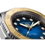 Mêlant l'or jaune 18K 3N et des diamants VS de 1,4 mm de diamètre (0,107 ct), cette somptueuse TAG Heuer Aquaracer affiche un cadran en nacre bleu fumé. Étanche à 200 mètres et munie d'un bracelet en caoutchouc, elle est faite pour ceux qui osent aller plus loin.
