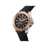 Quand luxe est synonyme de résistance extrême. La lunette incrustée d’or rose 18 carats 5N et la couronne vissée de cette TAG Heuer Aquaracer contrastent avec le cadran noir fumé orné d'aiguilles et d’index ultra-lisibles. L’alliée de tous vos exploits.