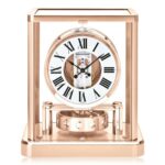 Comme flottant dans les airs, le balancier en forme d’anneau tourne lentement, égrenant le temps sans s’arrêter. La pendule Atmos Classique dans son cabinet doré or rose est un véritable objet de style.