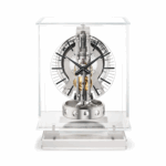 Poursuivant la légende du mouvement quasi perpétuel initié en 1928 par l’ingénieur Jean-Léon Reutter, la pendule Atmos Transparente revêt un nouveau visage à la sobriété exacerbée. Respectant les traits du style Art déco qui la caractérise depuis les origines, cet objet de style reste d’une beauté et d’une pureté intemporelles.