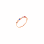 Bague Bollicine en or rose 9 K avec 1 diamant blanc (0,03 ct), 1 diamant cognac (0,02 ct), saphir orange traité (0,03 ct), saphir rose (0,03 ct), rubis (0,02 ct), améthyste (0,02 ct), topaze bleue (0,02 ct), saphir bleu pastel (0,02 ct) et tsavorite (0,02 ct)