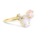 Bague, Quartz Rose, Diamants, Nacre Blanche, Or Jaune
