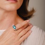 Lionel Meylan Création, bague M en or blanc 750 sertie d'un zircon naturel, bleu, taille coussin de 12.26ct et de 72 diamants taille brillant total 0.67ct