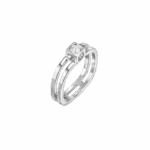 L’iconique bague deux rangs se réinvente en or blanc avec un diamant en son centre, pour plus de simplicité et se prêtant au jeu de l’accumulation. Grâce à ce corps carré, ce bijou est pensé pour ne pas tourner autour du doigt.