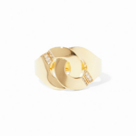 Bague Menottes dinh van moyen modèle en or jaune 18 carats sertie de diamants.