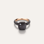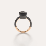 Bague en or rose 18 K et titane avec 1 obsidienne (≈6.3 ct) et 58 diamants traités noirs (≈0.8 ct) sur de l’or rose 18 K rhodié noir.