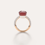D’une élégance naturelle, l’éblouissant Nudo allie raffinement, couleur et originalité. Somptueuse version de la bague la plus emblématique de la marque, ce Nudo est orné d’un grenat intense et d’un étincelant pavé de diamants blancs.