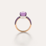 Se distinguant par ses couleurs intenses, Nudo reste la création phare de Pomellato. Immédiatement reconnaissable, la nouvelle bague Nudo décline un tout nouveau duo : améthyste et jade accompagnés d’un pavé d’améthystes.