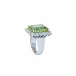 Bague or blanc 750 avec béryl vert pastel et 20 diamants