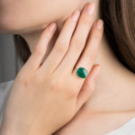 Une ligne d'une grande pureté, sans griffes, ni serti, un anneau d'or traverse délicatement la pierre.