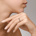 Les doubles bagues condensent à merveille toute la discrétion de l’élégance milanaise. Deux cercles en or réunis transversalement par un lien plat : deux formes pures et parfaites unies à jamais pour donner naissance à un grand tout. Il est possible de porter la bague soit en montrant soit en dissimulant son précieux élément de jonction.