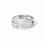 Une bague tubulaire réhaussée d’un pavage diamant qui confère à ce monochrome d’or blanc une allure de fête.