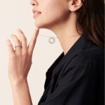 Une bague réhaussée d’un pavage diamant qui confère à ce monochrome d’or blanc une allure de fête.
