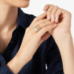 Bague Rondelle en argent doré or rose 18 K et émail bicolore turquoise.