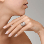 Bague en or rose 18 K avec 87 diamants cognac (≈1.8 ct) sur de l’or rose 18 K rhodié noir et 30 diamants blancs (≈0.5 ct) sur de l’or rose 18 K rhodié blanc.