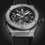 Hublot, Big Bang Meca-10, mouvement à remontage manuel, boîte titane 45mm, cadran squelette, 2 aiguilles, trotteuse à 9h, réserve de marche 10 jours à 6h, bracelet caoutchouc noir One Click, boucle déployante titane, étanche 100M