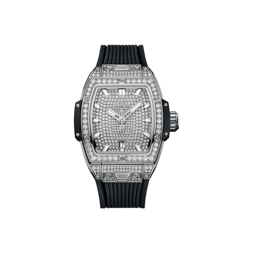 Lunette : Acier inoxydable poli serti de 44 diamants
