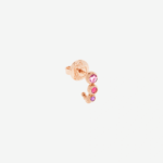 Boucle d’oreille Bollicine en or rose 9 K avec 1 saphir rose (0,08 ct), 1 rubis (0,04 ct) et 1 améthyste (0,01 ct).