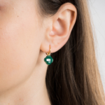 Boucles D'oreilles, Agate Verte, Or Jaune