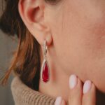 Boucles d'oreilles serties de Rhodonites et diamants
