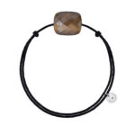 Bracelet, Oeil De Tigre Miel, Cordon Noir