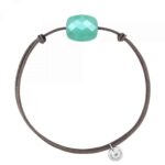 Cette collection emblématique met les pierres fines en majesté, sans griffe, ni serti, au contact de la peau. La taille en "coussin" aux multiples facettes apporte douceur et élégance. L'Amazonite apporte Imagination et Créativité.