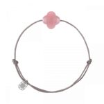 Cette collection emblématique met les pierres fines en majesté, sans griffe, ni serti, au contact de la peau. La taille en "trèfle" est un symbole de chance. Le Guava Quartz entretien l'Amour et rééquilibre le Corps et l'Esprit. BRACELET CORDON TAUPE TREFLE QUARTZ GUAVA (7.60CARATS) ARGENT 925