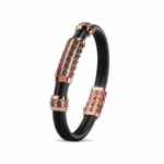 Bracelet Gladius Double en or rouge 750 avec 87 diamants taille brillant – 0,60 carat. Avec pièces latérales et bracelet en caoutchouc haute technologie (couleur du caoutchouc personnalisable)