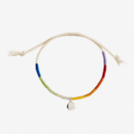 Bracelet LGBTQ+ avec pendentif en argent 925 et émail nacré multicolore et cordon en coton multicolore.