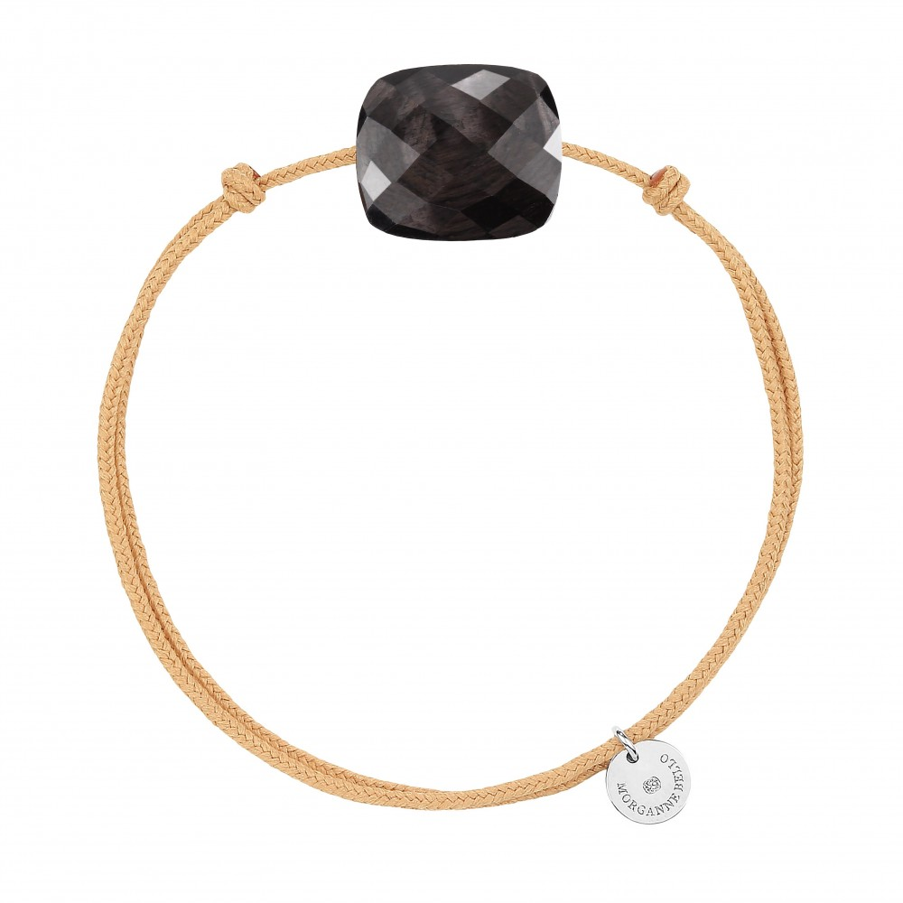 Bracelet, Pierre De Lune Hypersthène, Cordon Beige Dore
