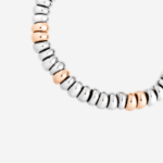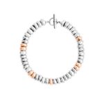 Bracelet Rondelle Bold en argent 925 et argent doré or rose 18 K, chaîne et fermoir T en argent 925 et anneau brisé en acier. Aiguille en argent 925 incluse.
