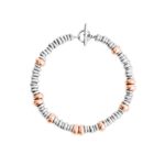 Bracelet Rondelle classiques en argent 925 et Bold en argent doré or rose 18 K, chaîne et fermoir T en argent 925, anneau brisé en acier. Aiguille en argent 925 incluse.
