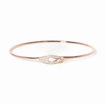 La fonction créant le design, la serrure est stylisée et devient un fermoir bijou. Une nouvelle esthétique en or rose apporte féminité, douceur et préciosité au bracelet Serrure Jonc pavé de diamants.