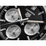 Inspirée du modèle 2447 NS et de son cadran panda inversé, cette prestigieuse version noire de 39 mm de la TAG Heuer Chronograph reprend le design signature de la Carrera dans un esprit contemporain. Avec son bracelet à grains de riz emblématique alliant inspiration vintage et savoir-faire moderne, cette montre est résolument pleine d'audace.