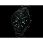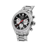 Fonctions : Heures, Minutes, Secondes, Chronographe : 1/4 de seconde, compteur des 30 minutes, compteur des 12 heures, Date