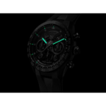 Fonctions : Heures, Minutes, Secondes, Chronographe : 1/4 de seconde, compteur des 30 minutes, compteur des 12 heures, Date