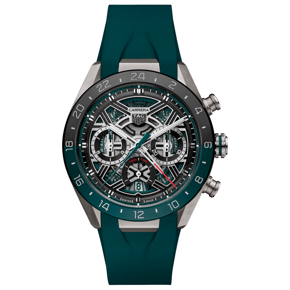 La TAG Heuer Carrera Chronograph Extreme Sport Twin-Time redéfinit la performance avec un design inspiré du sport automobile. Dotée d’une esthétique vert sarcelle audacieuse et d’une technologie de pointe, cette montre de 44 mm illustre la fusion audacieuse de l’ingénierie de précision et du style de la Maison suisse.