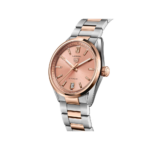 Incarnant l'essence même de la sophistication, cette luxueuse TAG Heuer Carrera Date de 36 mm distille l'élégance subtile des tons cuivrés de son cadran brossé azuré avec une silhouette qui fait écho à l'héritage historique de la collection en matière de vitesse et de luxe.