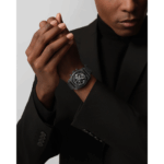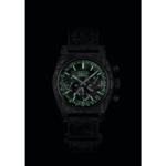 Présentée avec Revolution, la ZENITH CHRONOMASTER Revival Cover Girl Carbon est la troisième réédition inspirée de l’A3818. Plus légère que jamais, elle est dotée d’un boîtier en composite de carbone à la pointe de la technologie. Son cadran en carbone noir possède des index facettés luminescents. Elle est animée par le calibre de chronographe automatique haute fréquence El Primero. Une édition limitée à 150 exemplaires, livrée avec un bracelet en Velcro noir « effet carbone » ainsi qu’un bracelet en cuir de veau noir gaufré « effet échelle ».